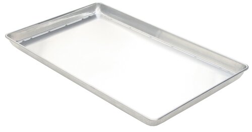 A Assadeira de alumínio lisa estampada, com medida de 62x36x3,5, é produzida sem emendas ou soldas, garantindo durabilidade excepcional, enquanto o arame ao longo da borda proporciona resistência extra. Os cantos arredondados levemente cônicos garantem praticidade no armazenamento.