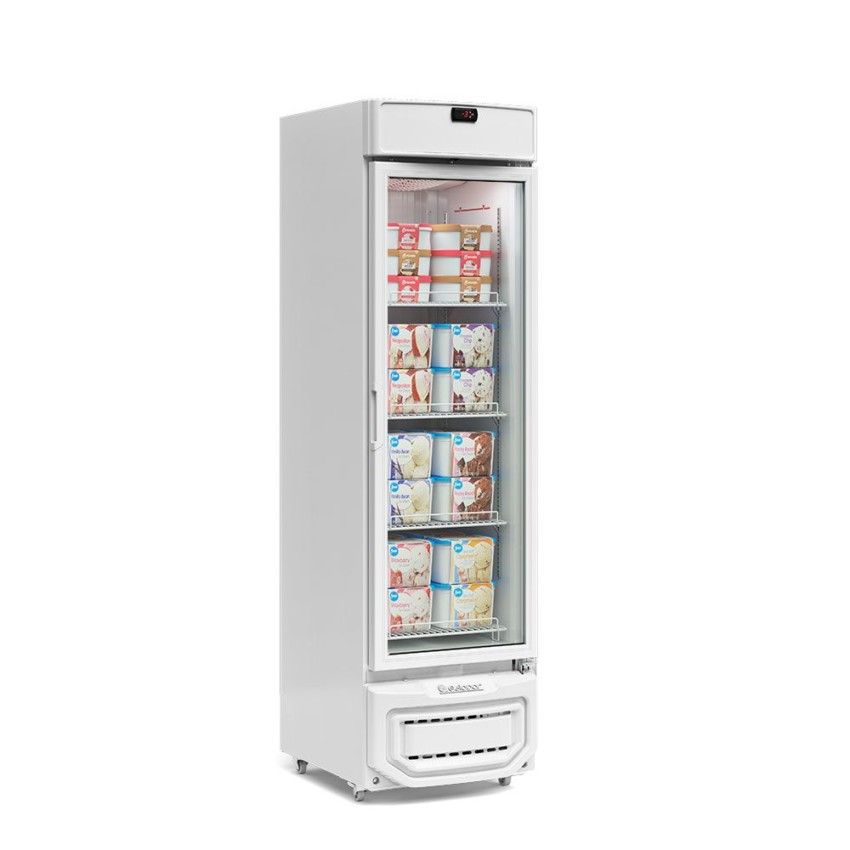 Conservador Vertical Conservação e exposição de sorvetes e produtos congelados Refrigeração: Ar forçado com evaporador aletado Temperatura: -18° a -22°C Degelo: Automático Controlador eletrônico com indicador de temperatura Revestimento Interno: Aço pré-pintado branco Revestimento Externo: Aço pré-pintado branco 1 barra de LED no painel externo; 1 interna Porta de vidro duplo temperado baixo emissvio, com aquecimento e fechamento automático Prateleiras aramadas: 3 níveis reguláveis e inclináveis + estrado Gabinete com rodízios e travas Vidros sujeitos a condensação da umidade do ar Equipamento(s) certificado(s) conforme Portaria Inmetro nº 148/2022 Produto destinado para uso comercial * Imagens meramente ilustrativas. Imagens e informações sujeitas a alterações sem aviso prévio. ** Cores de acabamento e materiais sujeitos a variação de acordo com o lote de produção e/ou entre os materiais que compõem o produto (ex.: chapa, plástico,madeiras e etc.)