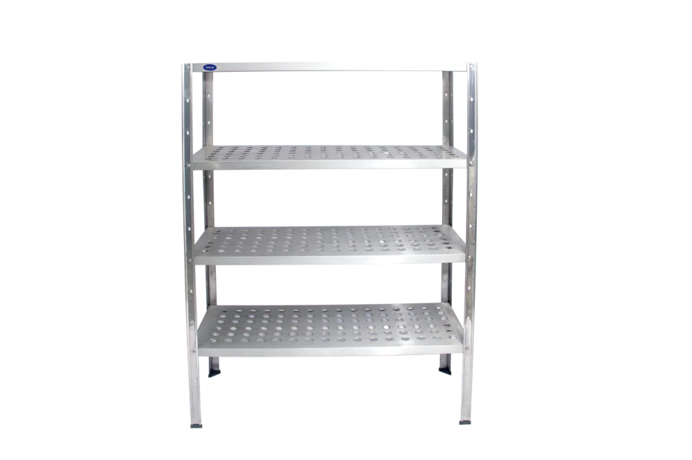 O produto é produzido em Aço Carbono com pintura eletrostática em Epóxi. Com 4 bandejas perfuradas ao longo de toda a extensão, é possível organizar seus produtos de forma eficiente. Além disso, oferece vários níveis para ajustar a altura das bandejas, permitindo acomodar itens de diferentes tamanhos.