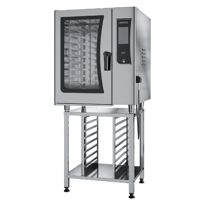 O forno CCS10, mais conhecido como Forno Combinado, justifica seu nome comum por possibilitar a cocção por ar seco, vapor e vapor combinado.