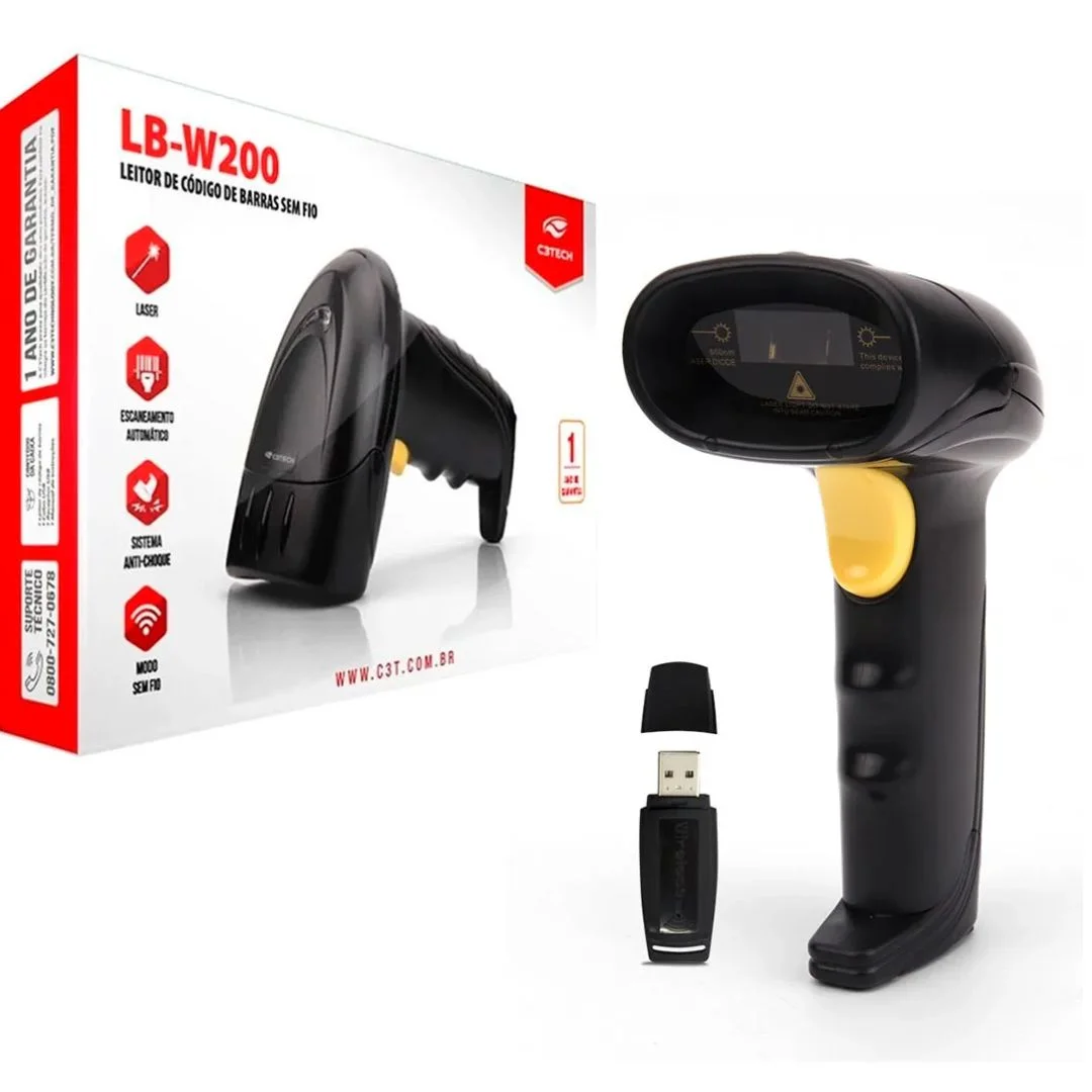 Leitor de Código de Barras Laser Sem fio C3 Tech LB-W200BK